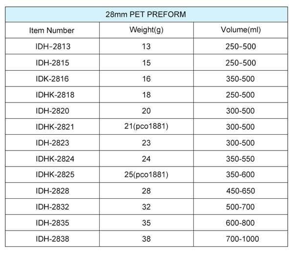 In addition to our wide selection of standard products, we also offer exceptional custom design services for PET preforms. Our expertise covers bottles in a diverse array of sizes and shapes, and we’ve helped many clients create products that suit their exact needs. Take a look at our catalog below — you may find a PET preform that matches your requirements.